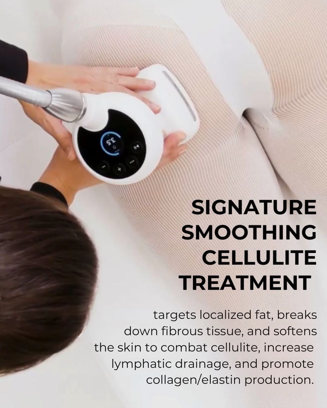 The appearance of cellulite is reduced by stimulating the skin and underlying tissue, improving circulation and smoothing uneven texture for a firmer, more refined look.